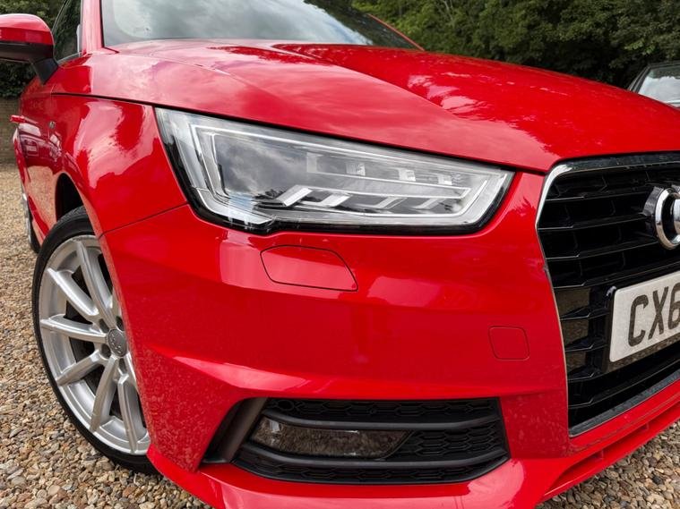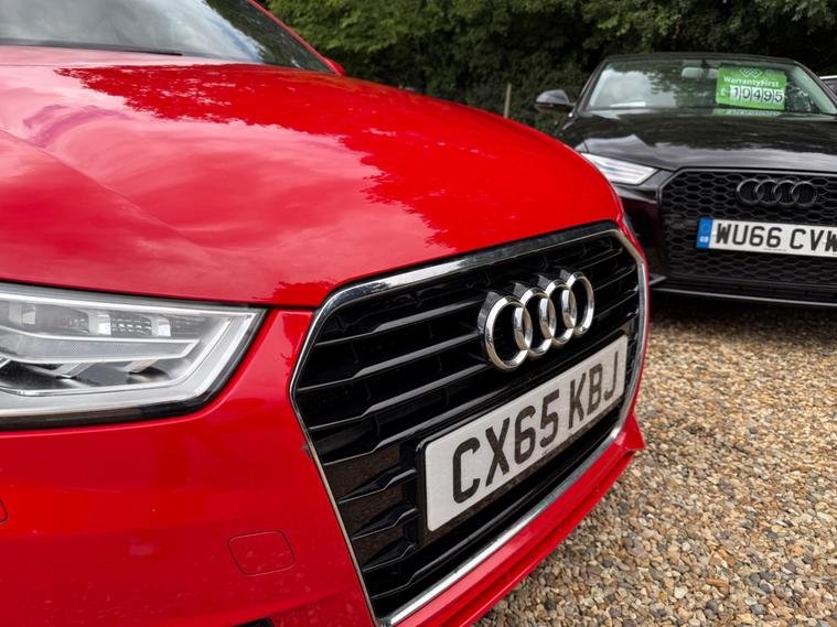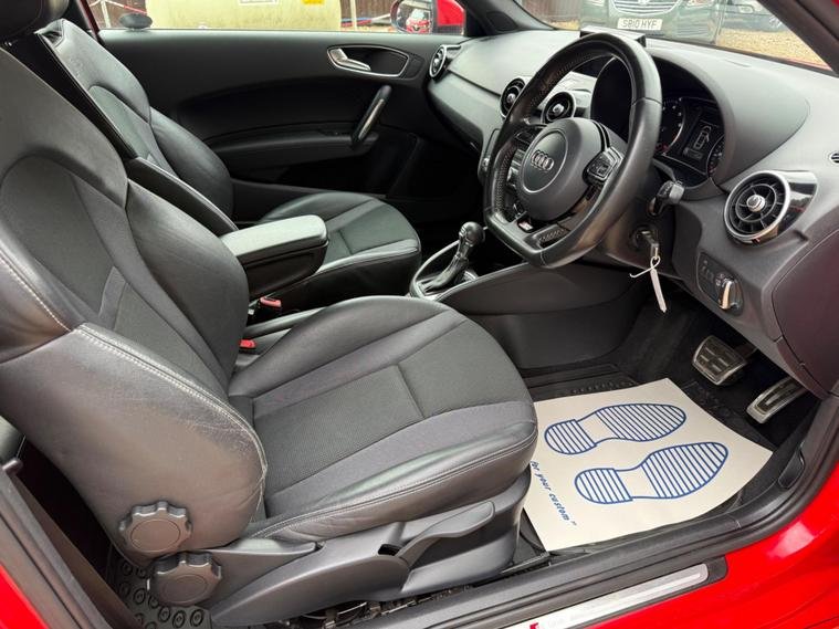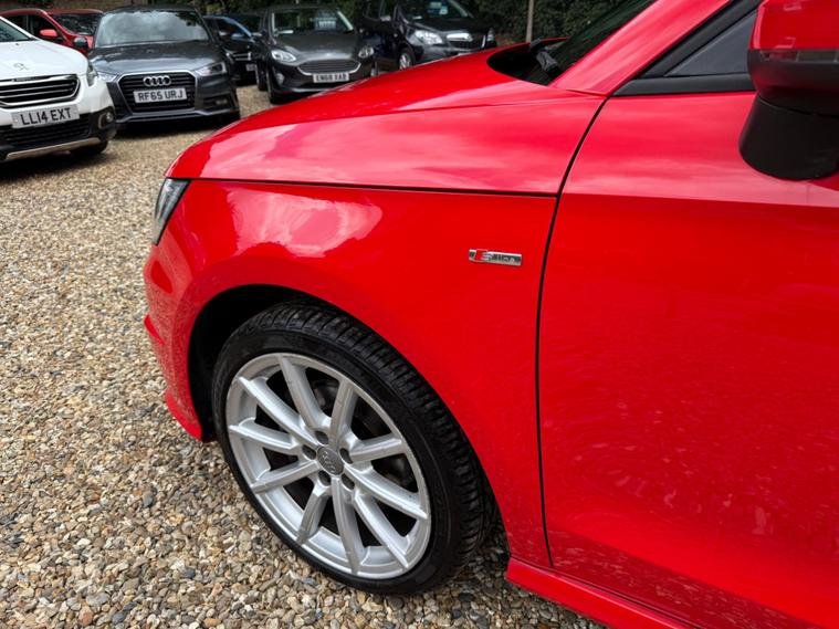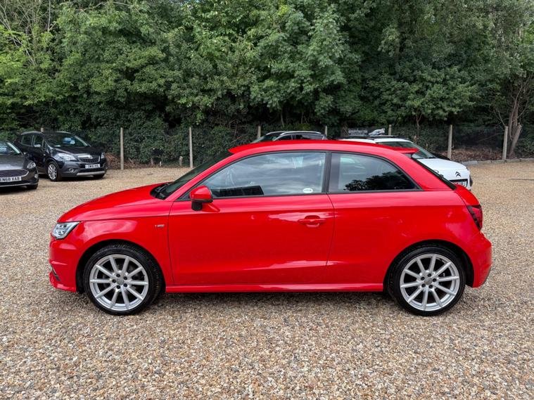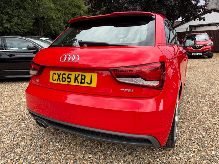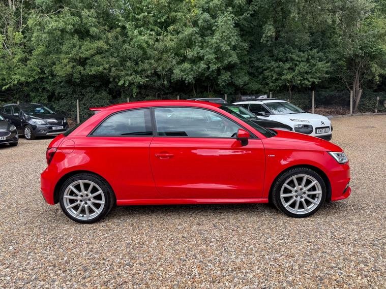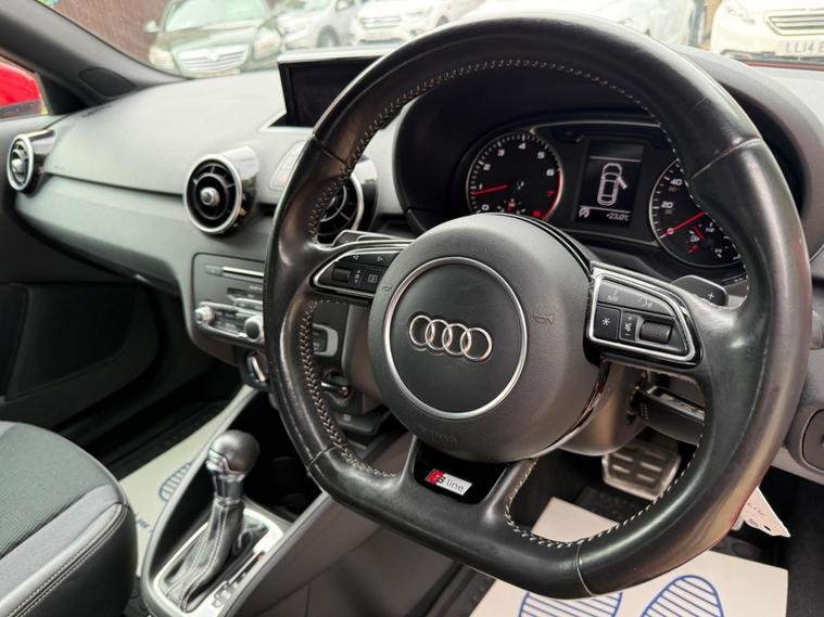 This 2015 Audi A1 S line model has a full service history, a clear vehicle history check, and a long MOT with no advisories. It features a 1.4L petrol engine and an automatic transmission. The car is equipped with modern conveniences like Bluetooth, DAB radio, leather seats, and bi-xenon plus headlights. It is a ULEZ compliant vehicle with low CO2 emissions.