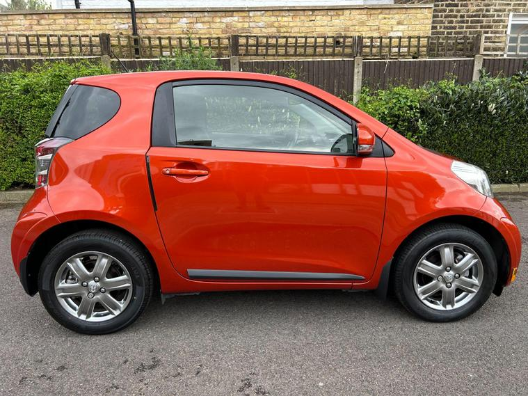 This 2012 Toyota iQ is in excellent condition with a full dealership service history and low mileage. It comes with two keys and features custom alloy wheels and side decals. The car includes the iStyle and iUrban packs and has air conditioning. With an impressive fuel economy of 59 mpg and low CO2 emissions, it is an economical and environmentally conscious choice for city driving.