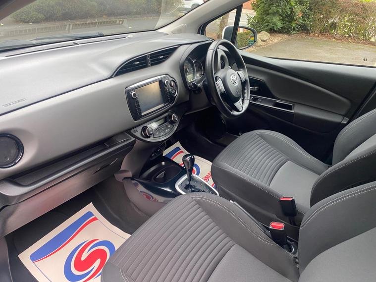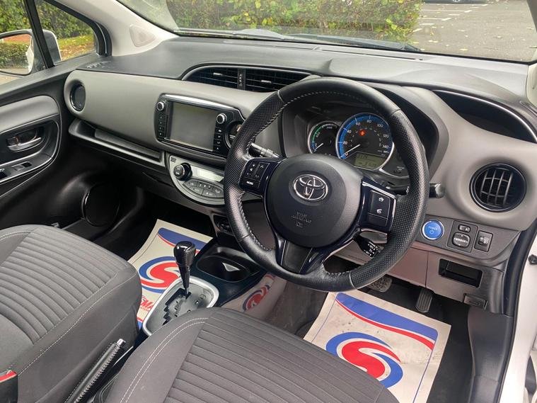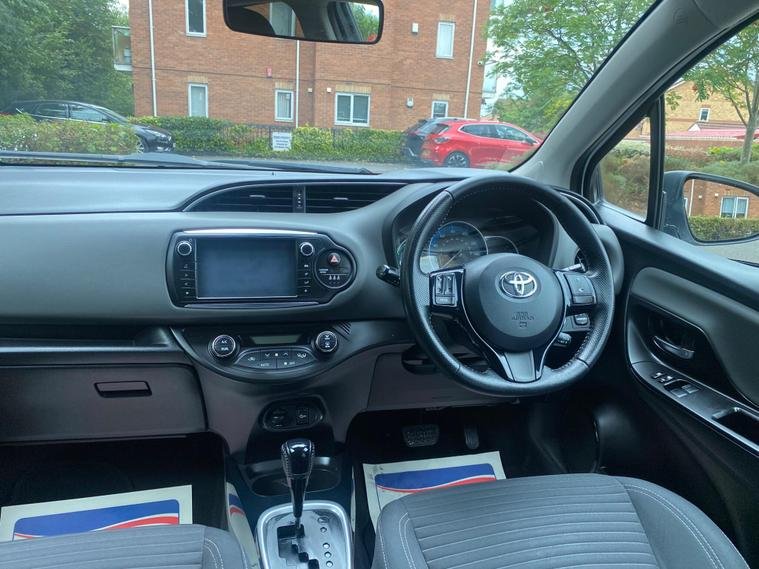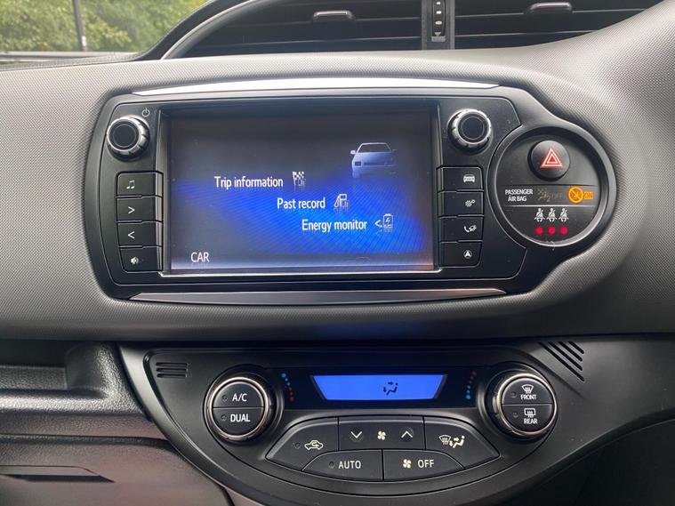 This one-owner, full-service history 2016 Toyota Yaris VVT-h Design is a clean, economical, and ULEZ-compliant petrol hybrid automatic car. It features an efficient 1.5L petrol hybrid engine, Dual Zone Automatic Air Conditioning, a reversing camera with parking assistance, and Bluetooth connectivity. The car boasts excellent fuel economy of 79 miles per gallon and has low CO2 emissions, contributing to its low running costs and making it an environmentally friendly option. Its low insurance group rating makes it a practical choice for daily use.